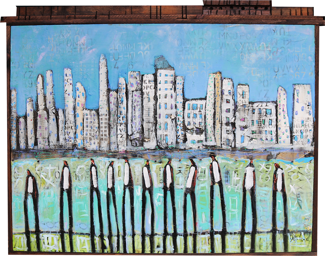 Paintings from the “Skyline Series” capture the energy and richness of life that William DeBilzan experiences on his visits to major cities throughout the world. Miami, Chicago, Boston, and Dallas are among the US cities that the artist has focused on, often incorporating distinguishing landmarks for reference. The New York skyline holds special significance for DeBilzan as it is where he installed 2,900 sq. feet of site-specific artwork at the Marriott Central Park. The series is popular with both corporate and private collectors and the artist is regularly commissioned to paint specific skylines. Click on a painting below to view details.